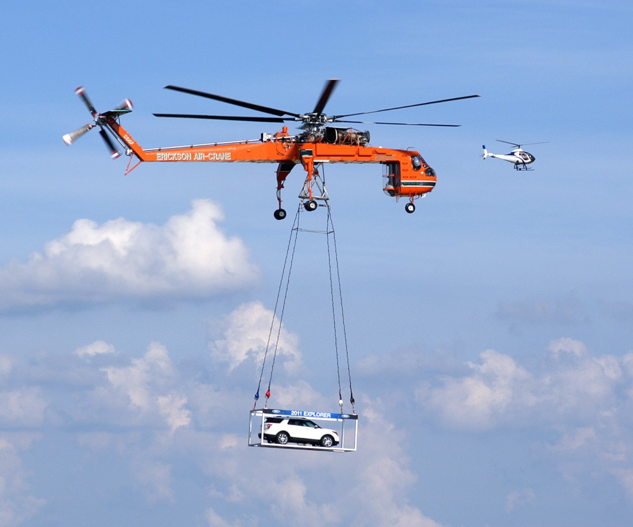 A newer and better known Sikorsky product, the S-64s (and the type certificate) are now all owned and operated by Ericson Air-Crane. Here Goliath arrives Monday with the public debut of the new Ford 2011 Explorer.
