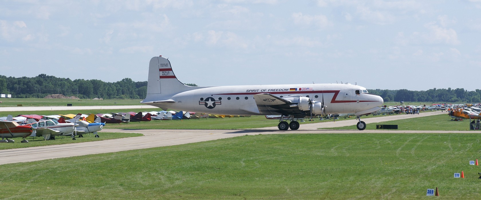 Astute viewers may notice that this is a rather strange looking DC-3. That's cuz it's not, it's a DC-2! Only 156 were built before the larger, more powerful DC-3s came out. This 1932 former Pan Am aircraft (N1934D) is the only one flying in the US, and the only other one in the country is at the Air Force Museum. A rare beast indeed. One of the reasons to go to AirVenture!