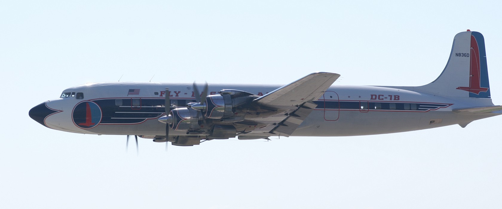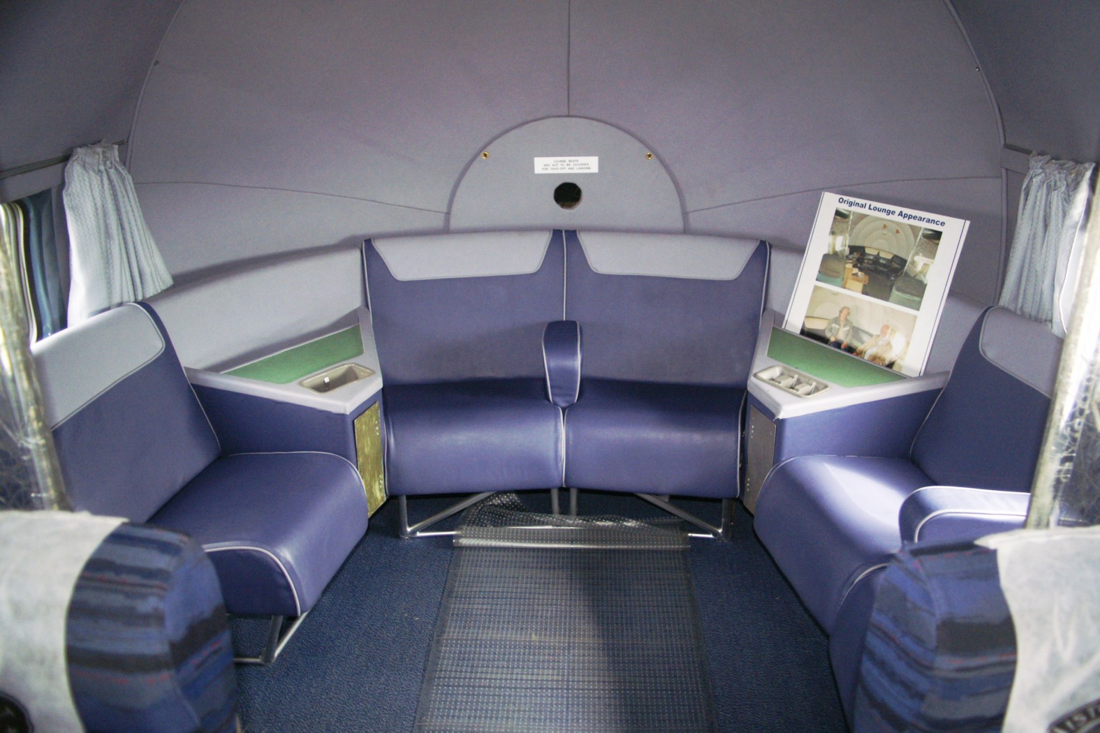 Below is the only flying Douglas DC-7B, the last of the piston-powered Douglas commercial series. This plane sat on a tarmac in Minnesota for 30 years before getting bought and restored by some dedicated folks just in time for AirVenture 2010, its public debut. Miracle on the Hudson crew Sully and Skiles are on board in the flight photo below. Lower photos are interior details, check out the smoking lounge.