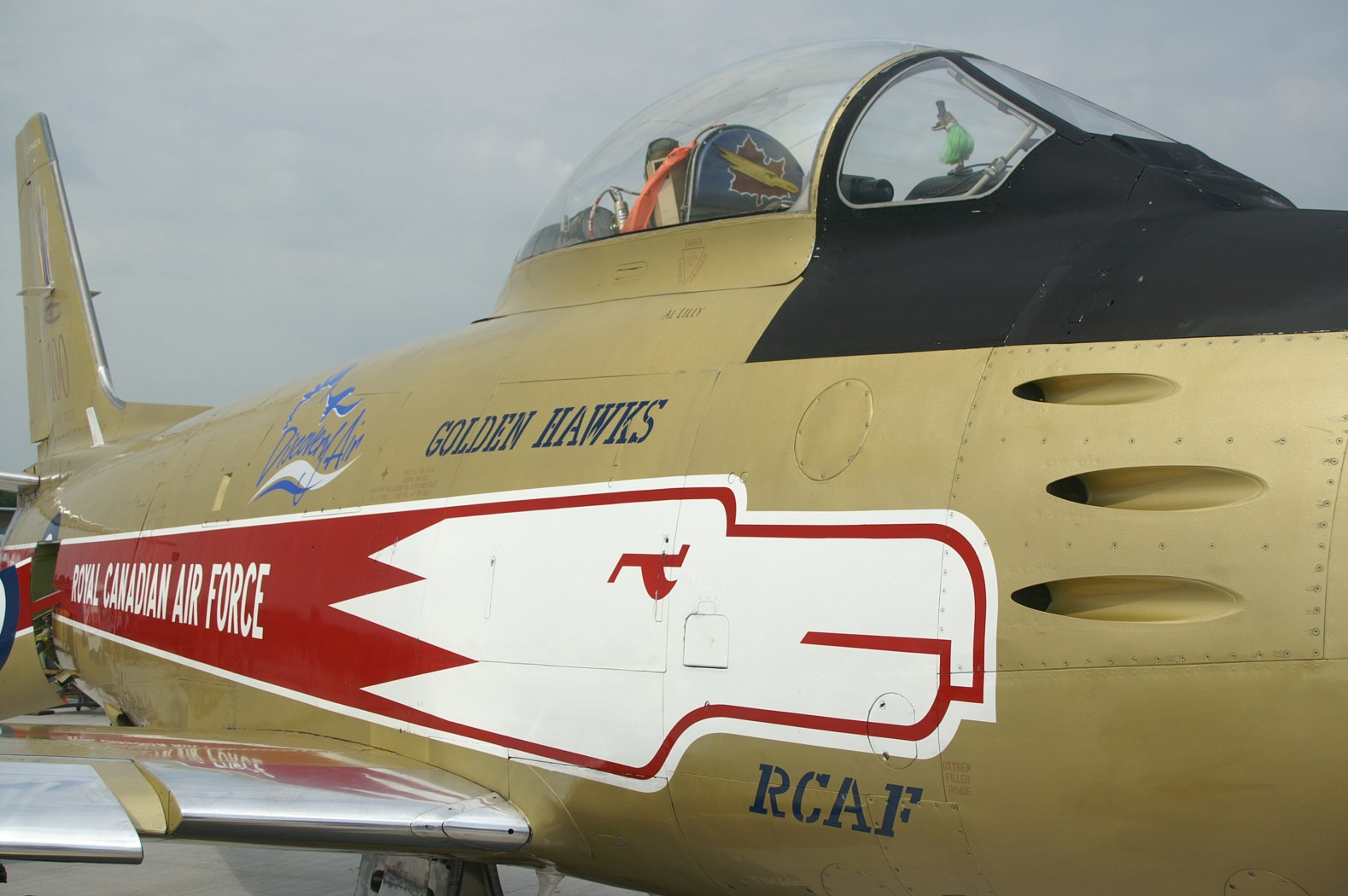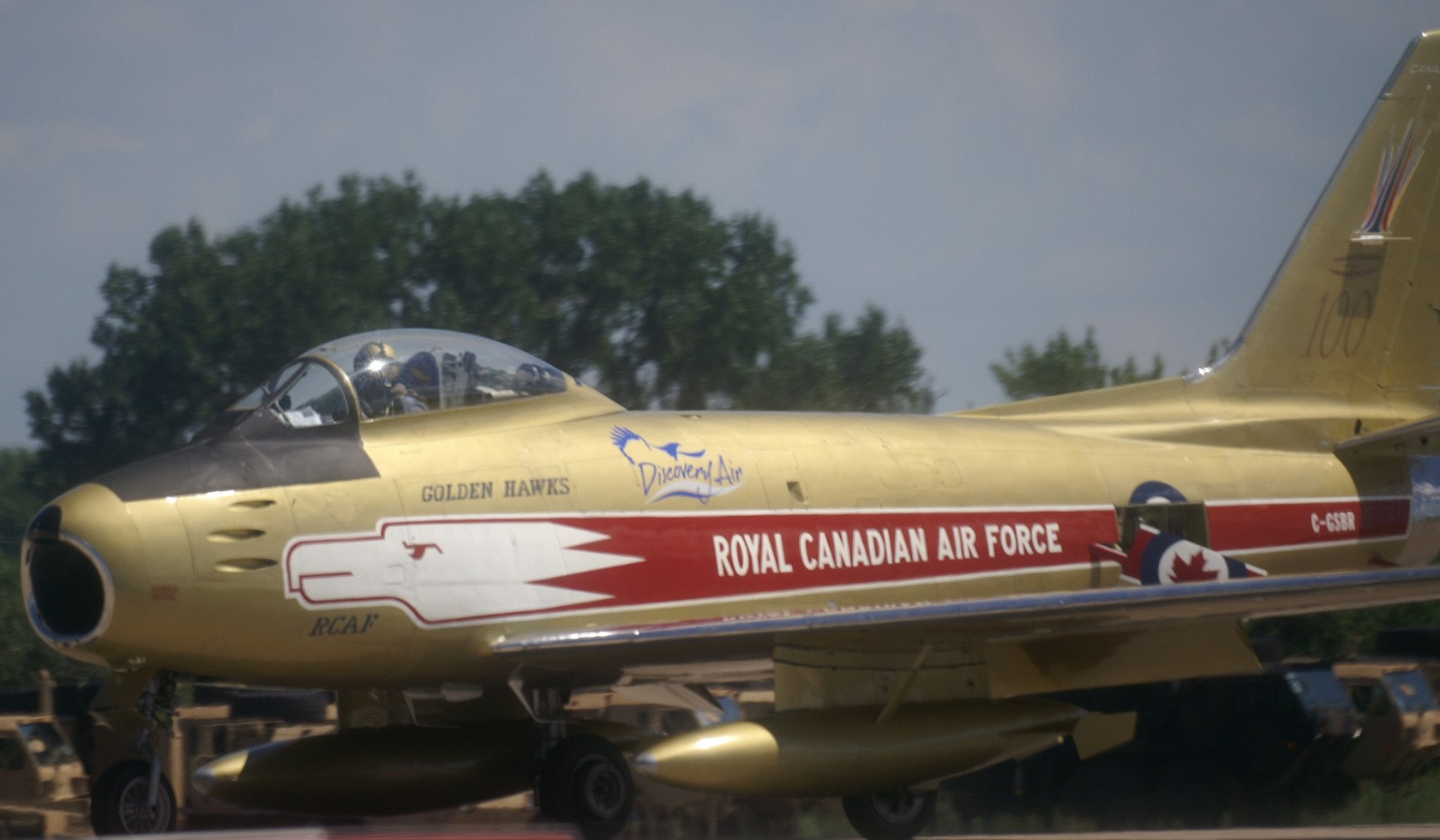 And one of the others was this fabulous Canadair Sabre (the most powerful Sabres) owned by Vintage Wings of Canada and restored to Golden Hawks demo team livery for the 100th anniversary of Canadian powered flight and 50th anniversary of the Hawks.