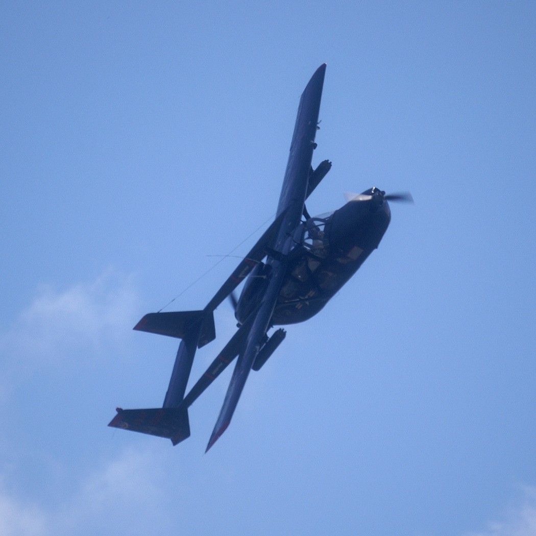 Chuck Aaron's Messerschmitt-Bölkow-Blohm Bo-105 is the only helo modified for aerobatics and so can roll and loop like no other rotorcraft. BTW, he built three Huey-Cobras from spare parts!