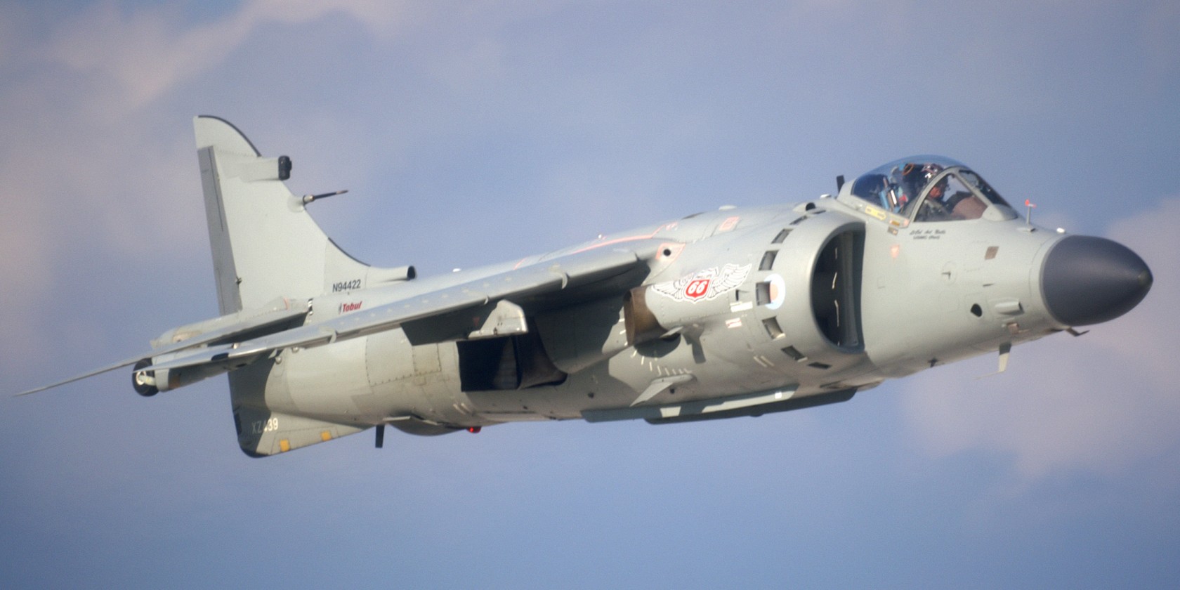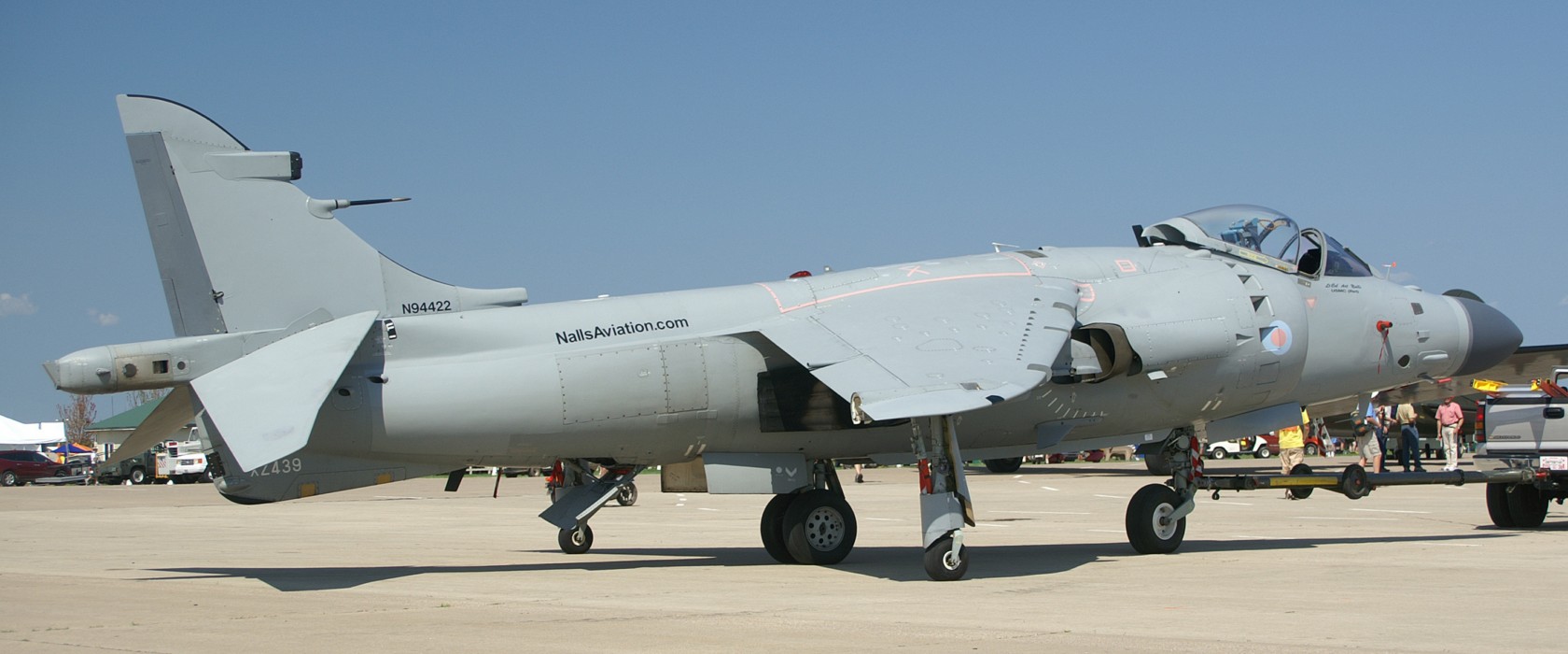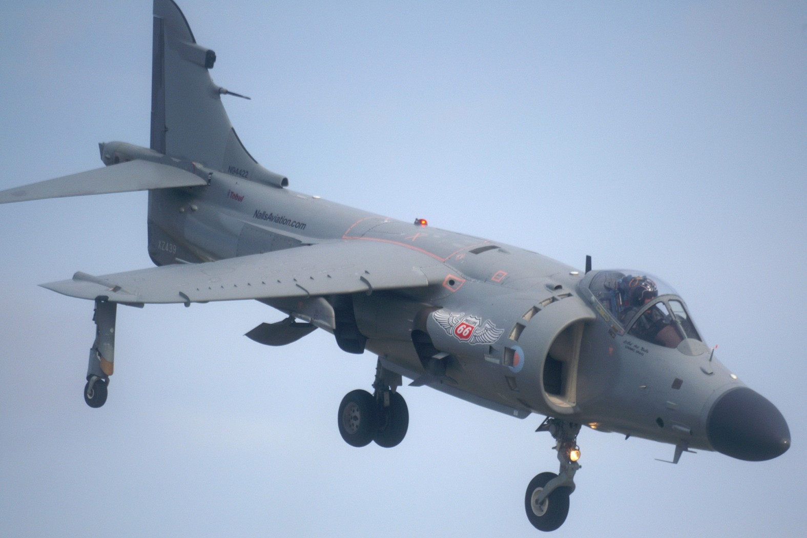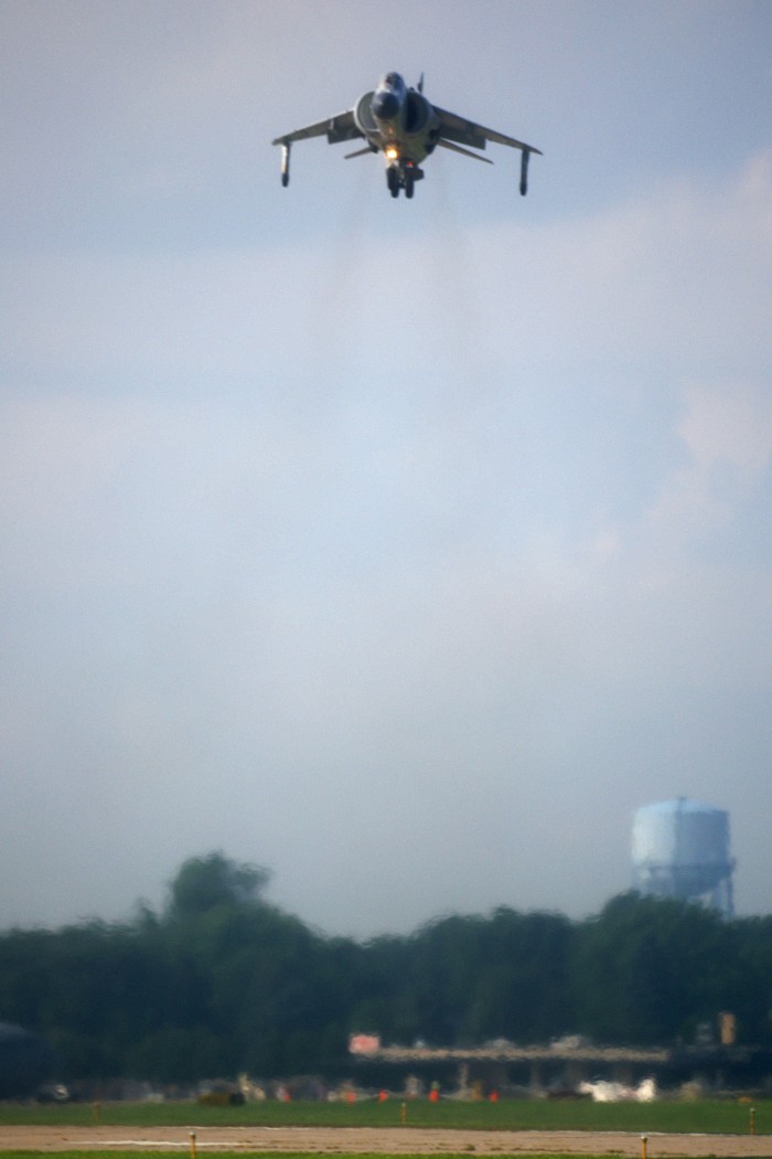 Whodathunkit? Art Nalls' privately owned former Royal Navy Sea Harrier FA.2 - note the small wing and radome nose - is just as loud as the Marine Corps AV-8B Harriers we are used to hearing (and he used to fly). The stubby wings reminded me of the old days of watching AV-8As in the 1970s and early 1980s. Yup, I've been to a lot of airshows....